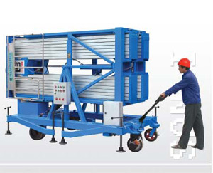 自行(háng)走式升降機,具有自(zì)動行走功能,能夠在不同工(gōng)作狀態下,不需外接電源,不需人工牽(qiān)引,移動靈活、操作方便、升降自如,隻需一(yī)人便可(kě)完成前進、後退、轉(zhuǎn)向、快、慢速行走和上下等動(dòng)作,省工、省力。特(tè)別適用於車站、碼頭、機場、體(tǐ)育場館、大型企業等較大範圍的高空作業,目前在國內是最理想的高空作業設備。GTWZ(IV)自行走四(sì)桅柱(zhù)升降機 該(gāi)係列產品(pǐn)為四桅(wéi)柱升降係(xì)統,具有起升高、載重量大,穩定性強等特點。 GTWZ(IV)係列自行走四桅柱升降機技術參數表